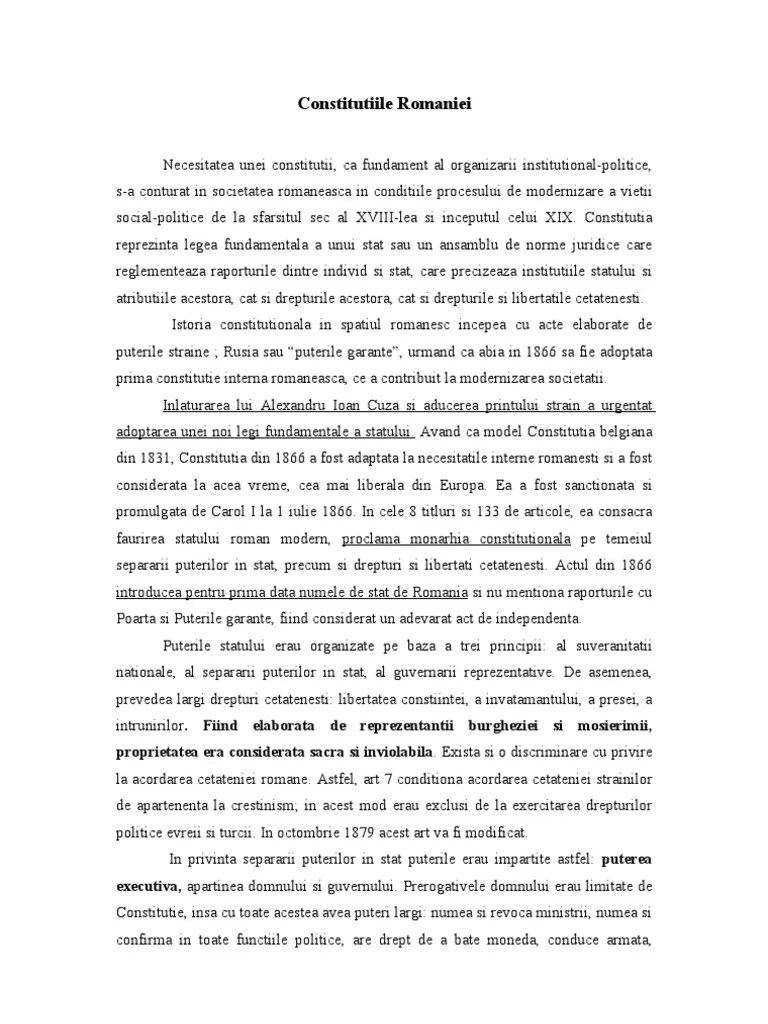 Prezentat Istoria Altfel ConstituÅ£iile Din Romania ConstituÈia Lege FundamentalÄ A Unui Stat Care StabileÈte Forma De GuvernÄmant Èi De Organizare StatalÄ Precum Èi Drepturile Èi ObligaÈiile Fundamentale Ale CetÄÈenilor I ConstituÅ£ia