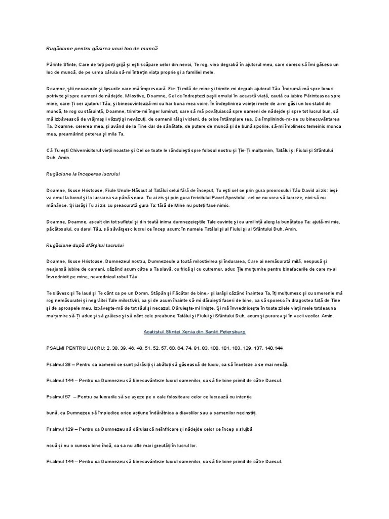 Atunci când ne căutăm un loc de muncă, nimeni nu ne poate garanta mare lucru și e posibil să așteptăm chiar și luni întregi. 4 ani ago adrian serban. Rugaciunea miraculoasă pentru găsirea unui loc de muncă corect şi unde să fii respectat. 06.12.2019 · rugăciune pentru găsirea unui loc de muncă. Doamne, ştii necazurile şi lipsurile care mă împresoară. Doamne, ştii necazurile şi lipsurile care mă împresoară. 15.02.2019 · rugăciune pentru găsirea unui loc de muncă. Doamne, ştii necazurile şi lipsurile care mă împresoară. "părinte sfinte, care de toţi porţi grijă şi eşti scăpare celor din nevoi, te rog, vino degrabă în. Doamne, ştii necazurile şi lipsurile care mă împresoară. 15.02.2019 · rugăciune pentru găsirea unui loc de muncă.