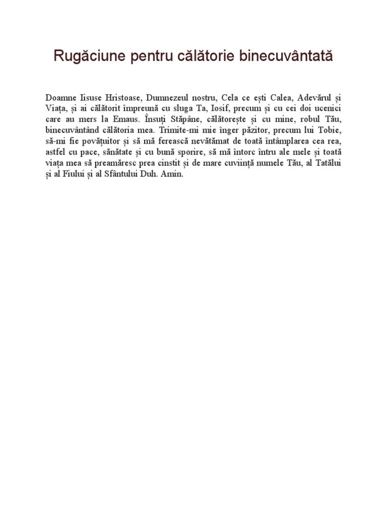 Însuți stăpâne, călătorește și cu mine, robul tău, binecuvântând călătoria mea.. 21/05/2012 · rugaciune la vreme de calatorie. Dacă ai nevoie de susținere, de. 24/02/2019 · rugaciune la vreme de calatorie.rugaciunea a fost inregistrata in data de 24 februarie 2019© toate drepturile rezervate